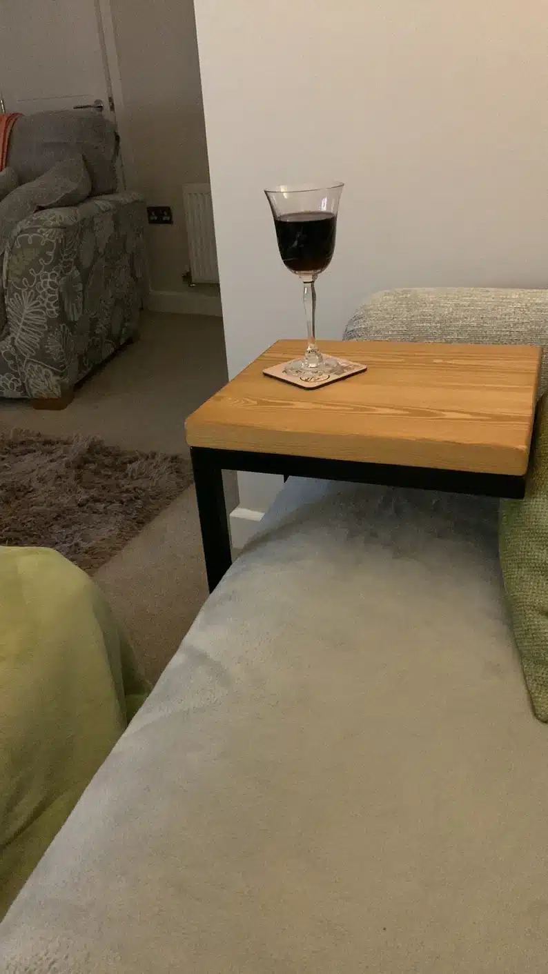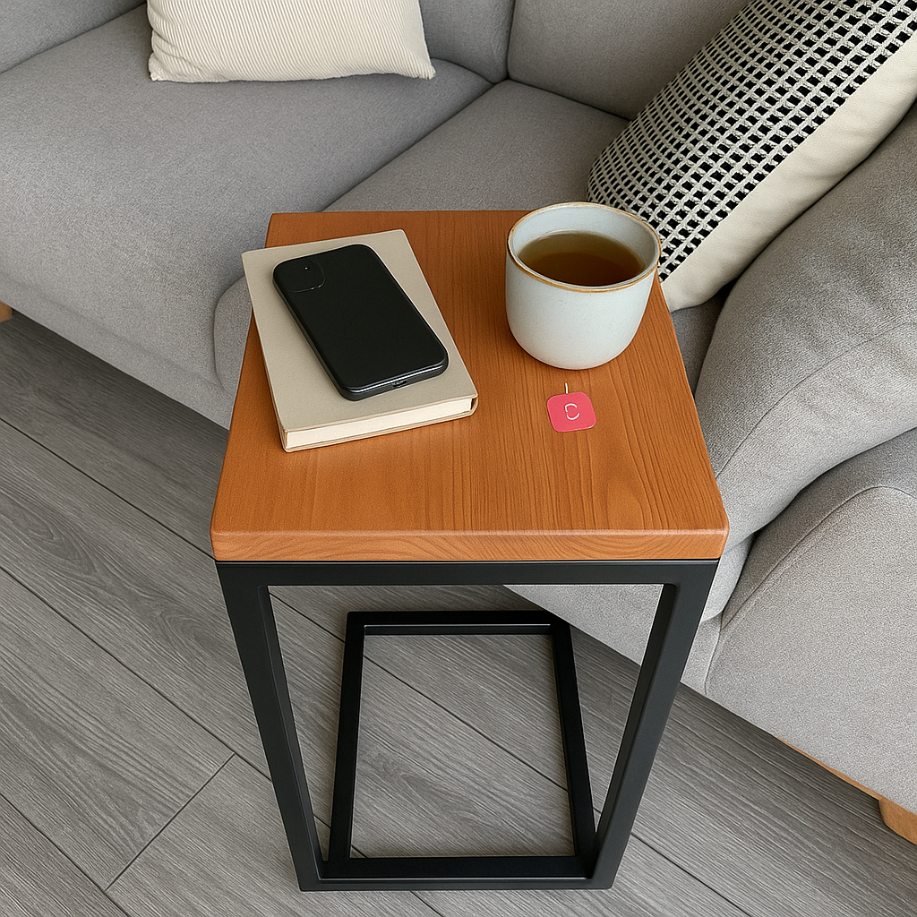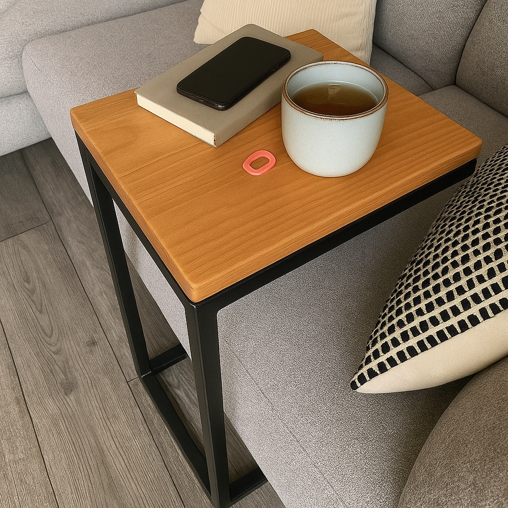 Graças ao seu design inteligente em formato “C”, esta mesa de apoio desliza facilmente sob o sofá, permitindo apoiar café, livros, notebook ou taças de vinho sem ocupar espaço extra no ambiente.